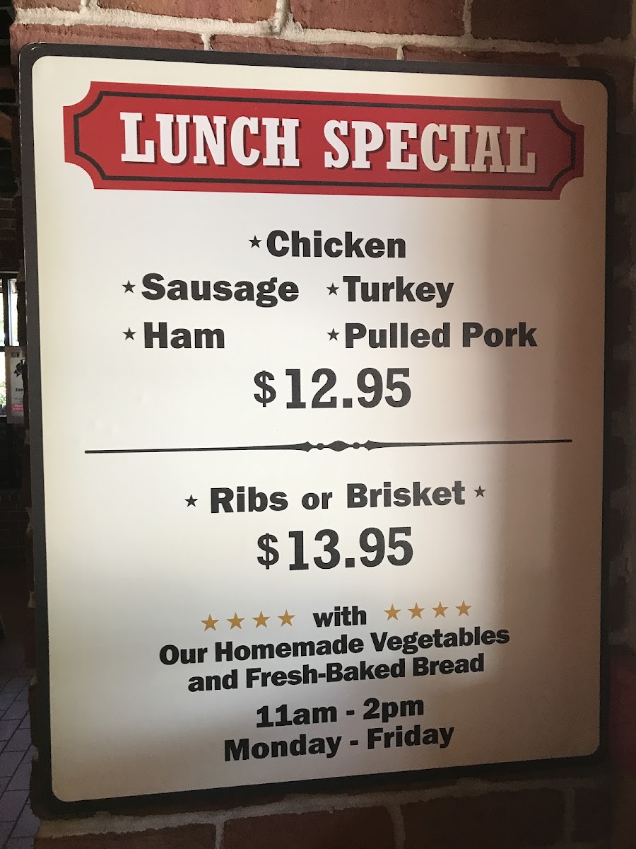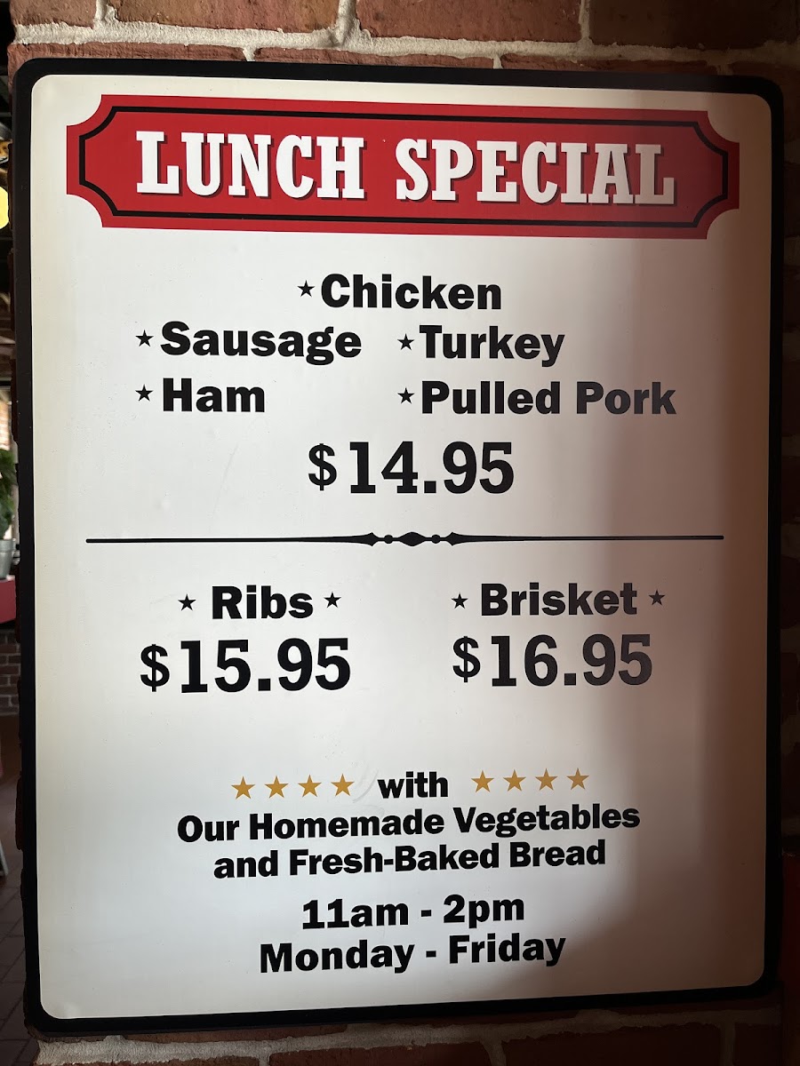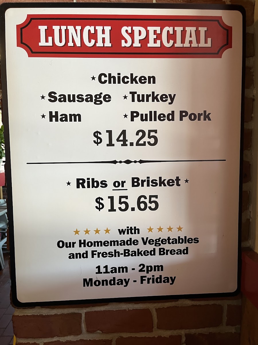 The menu features enticing lunch specials like the Sliced Brisket Lunch and the Cracked Black Pepper Sausage Dinner, both served with a choice of homestyle sides. Unique online exclusive items, such as the Smoked Chicken Jalapeno Ranch Potato, elevate the experience with flavors that truly satisfy.